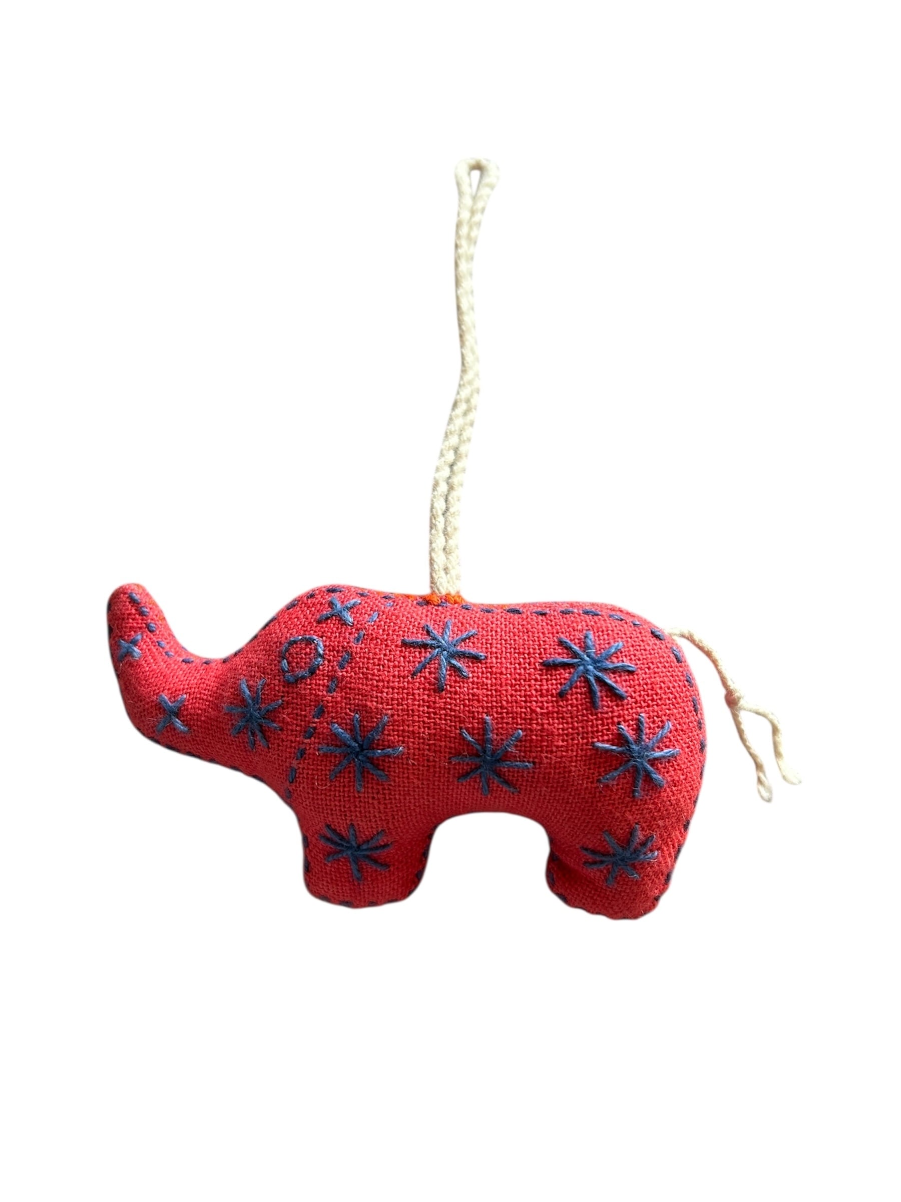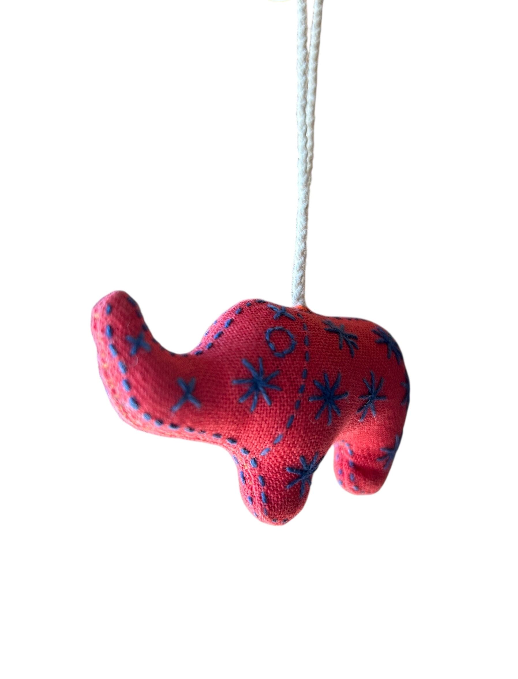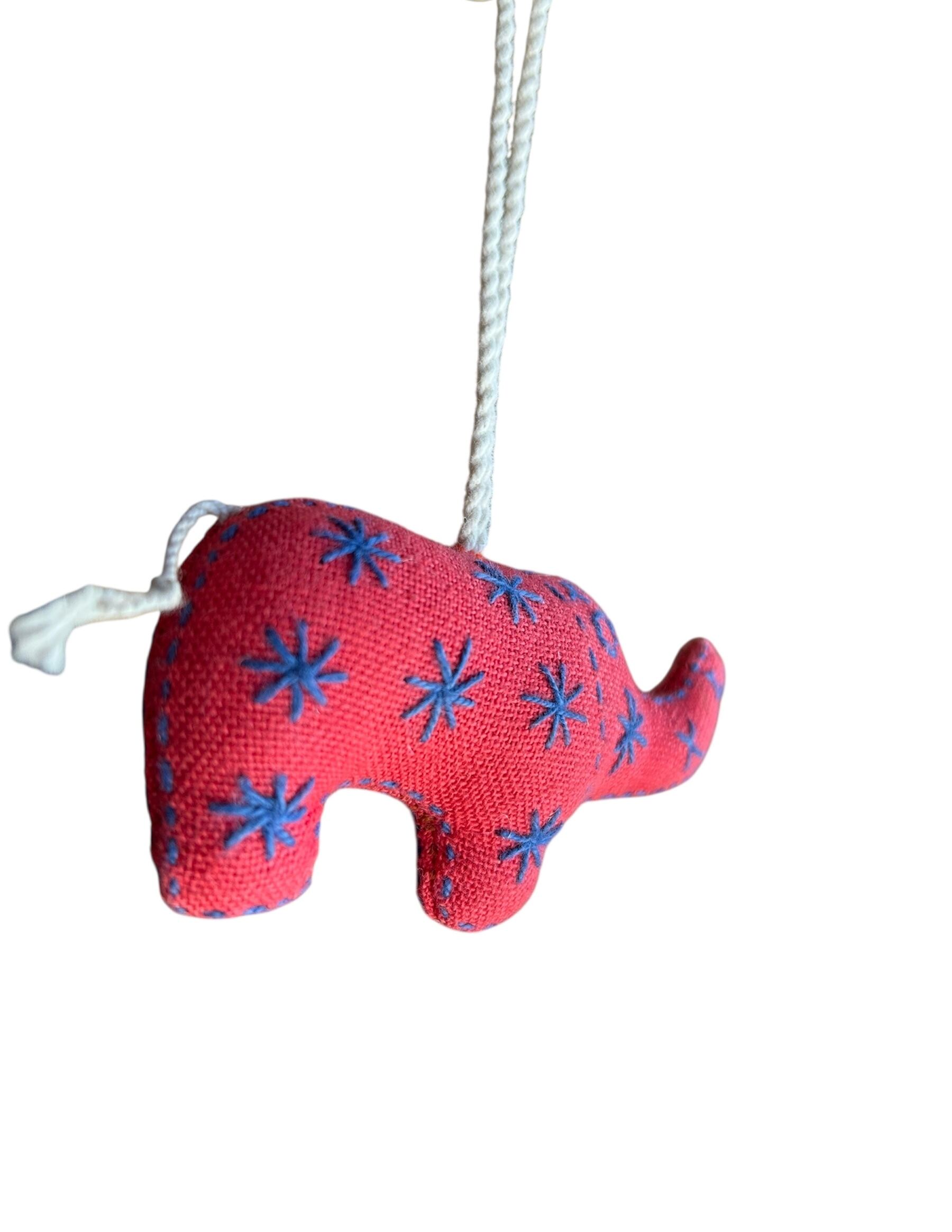 赤をベースに青で模様が刺繍されている可愛らしい象のチャームです。
