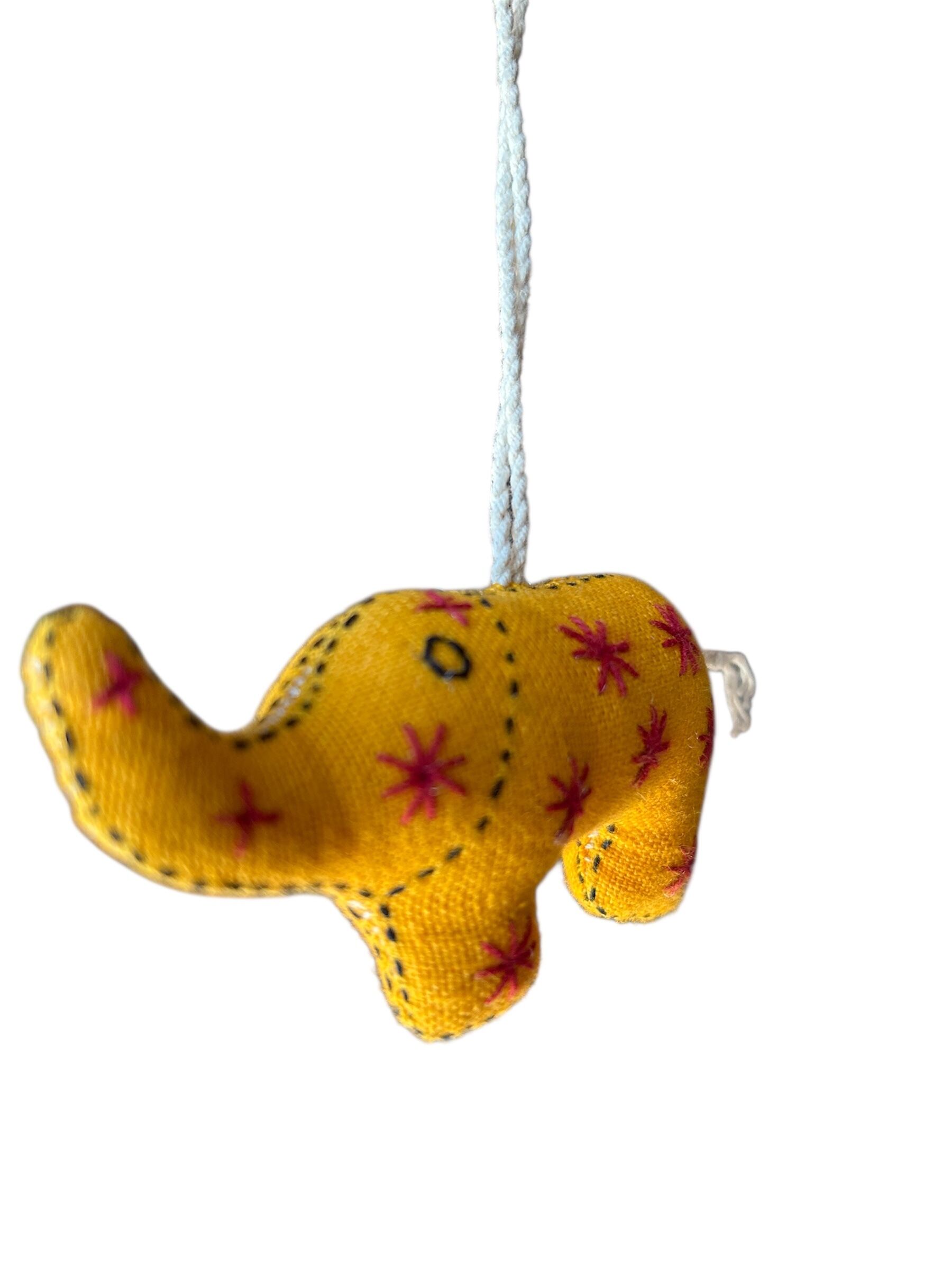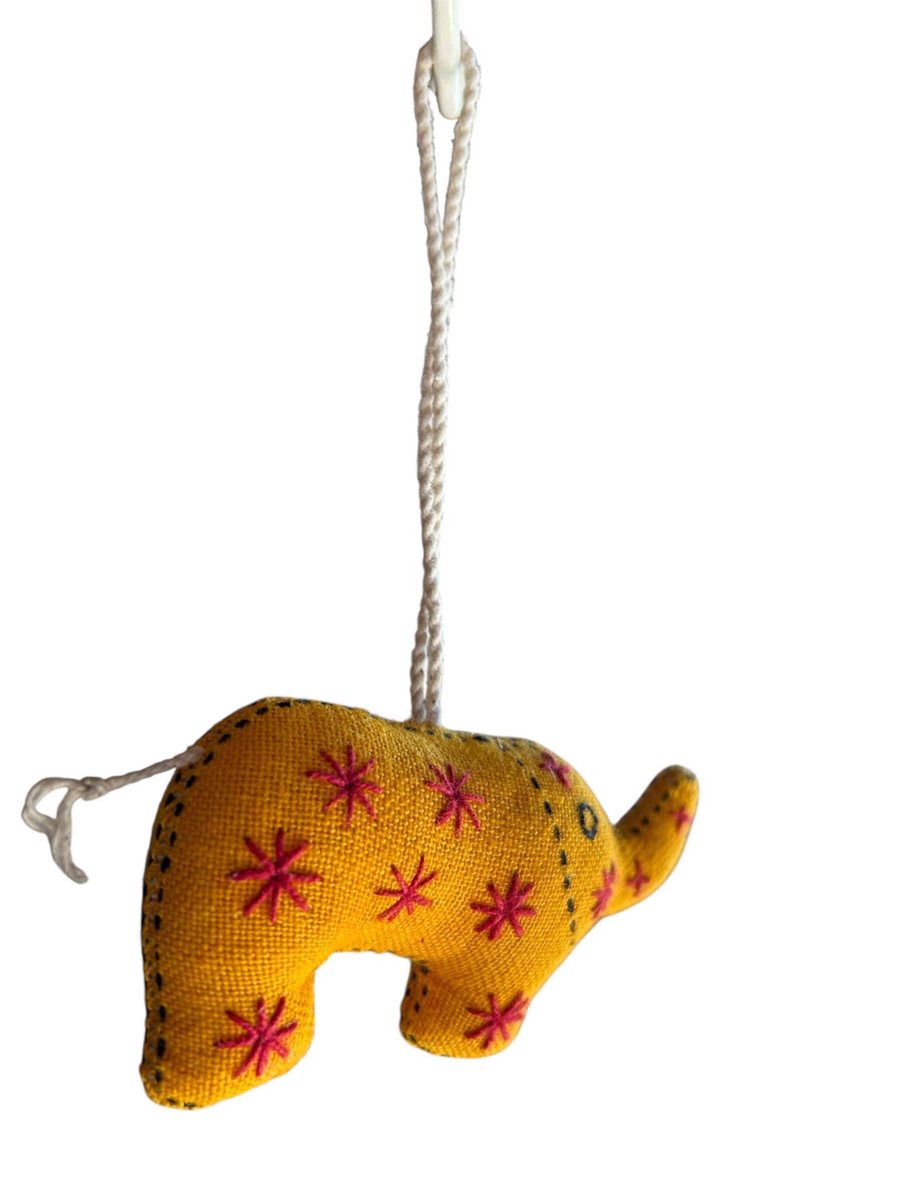 黄色をベースに赤で模様が刺繍されている可愛らしい象のチャームです。
