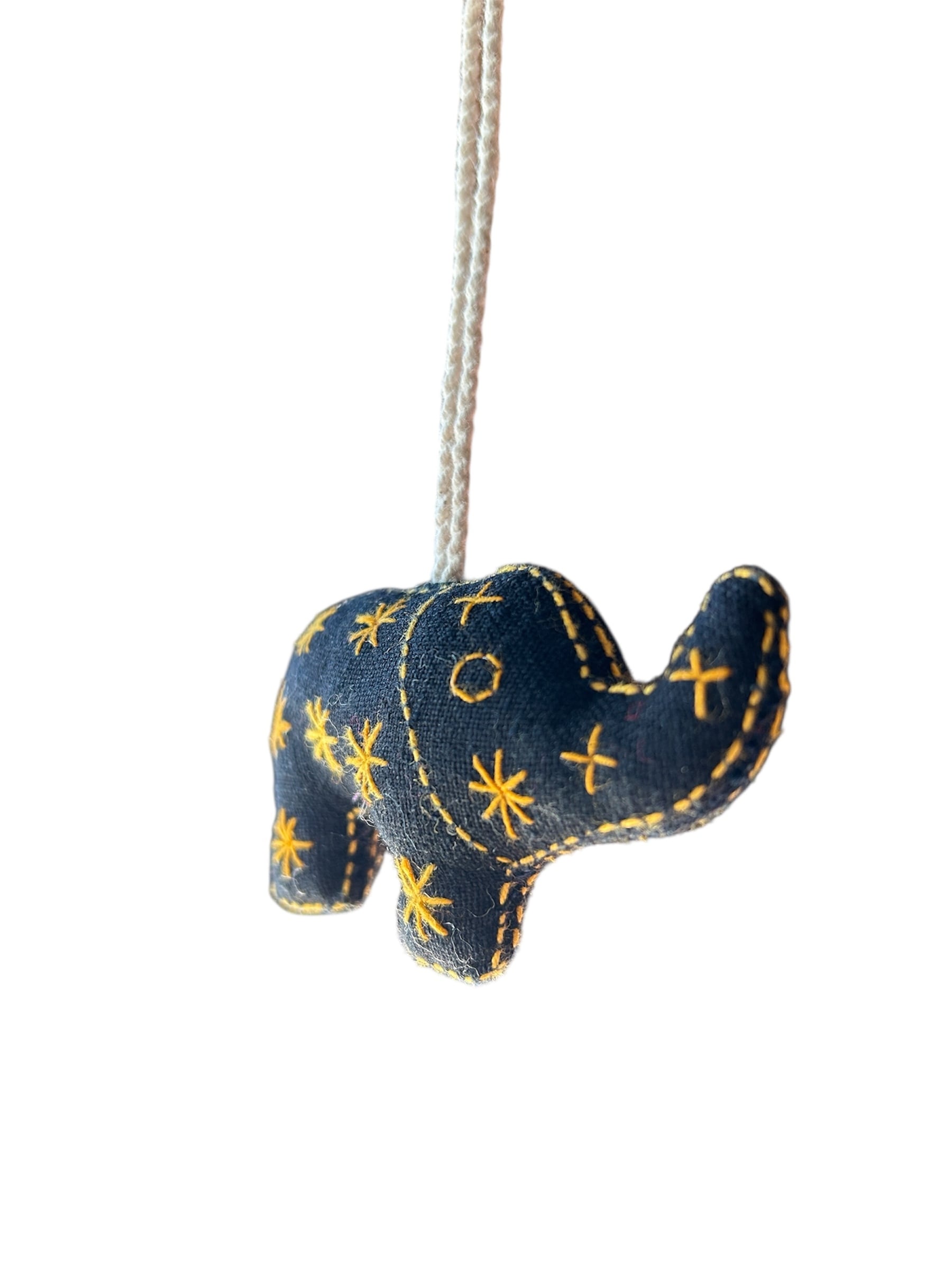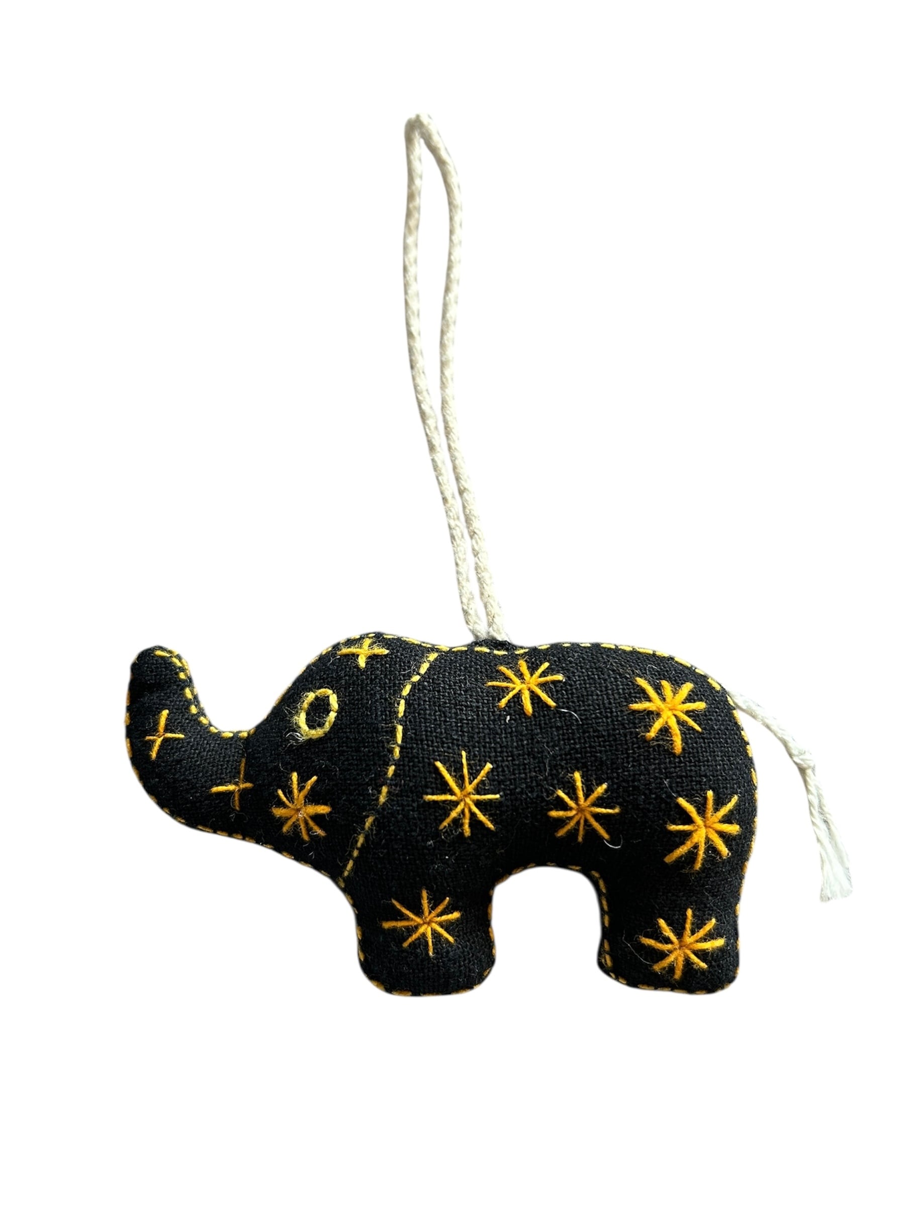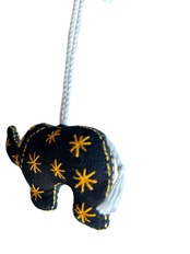 黒をベースに黄色で模様が刺繍されている可愛らしい象のチャームです。