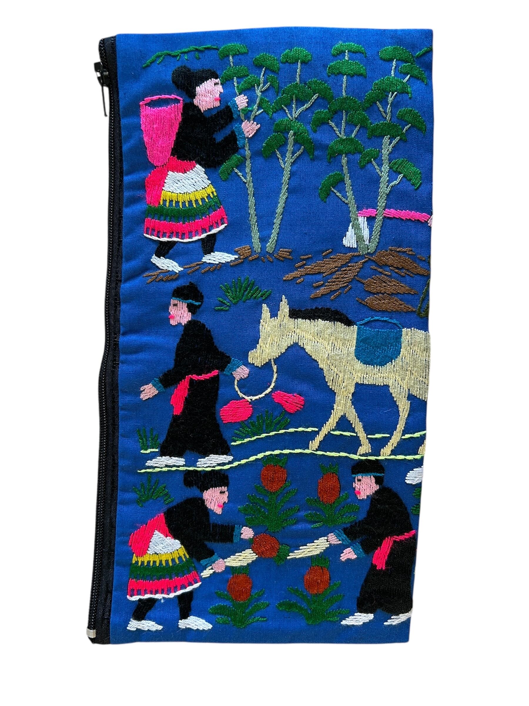 ラオスの世界遺産の町、ルアンパバーンに暮らす、モン族の女性達が一針一針手作業で刺繍をし、作り上げたポーチです。
