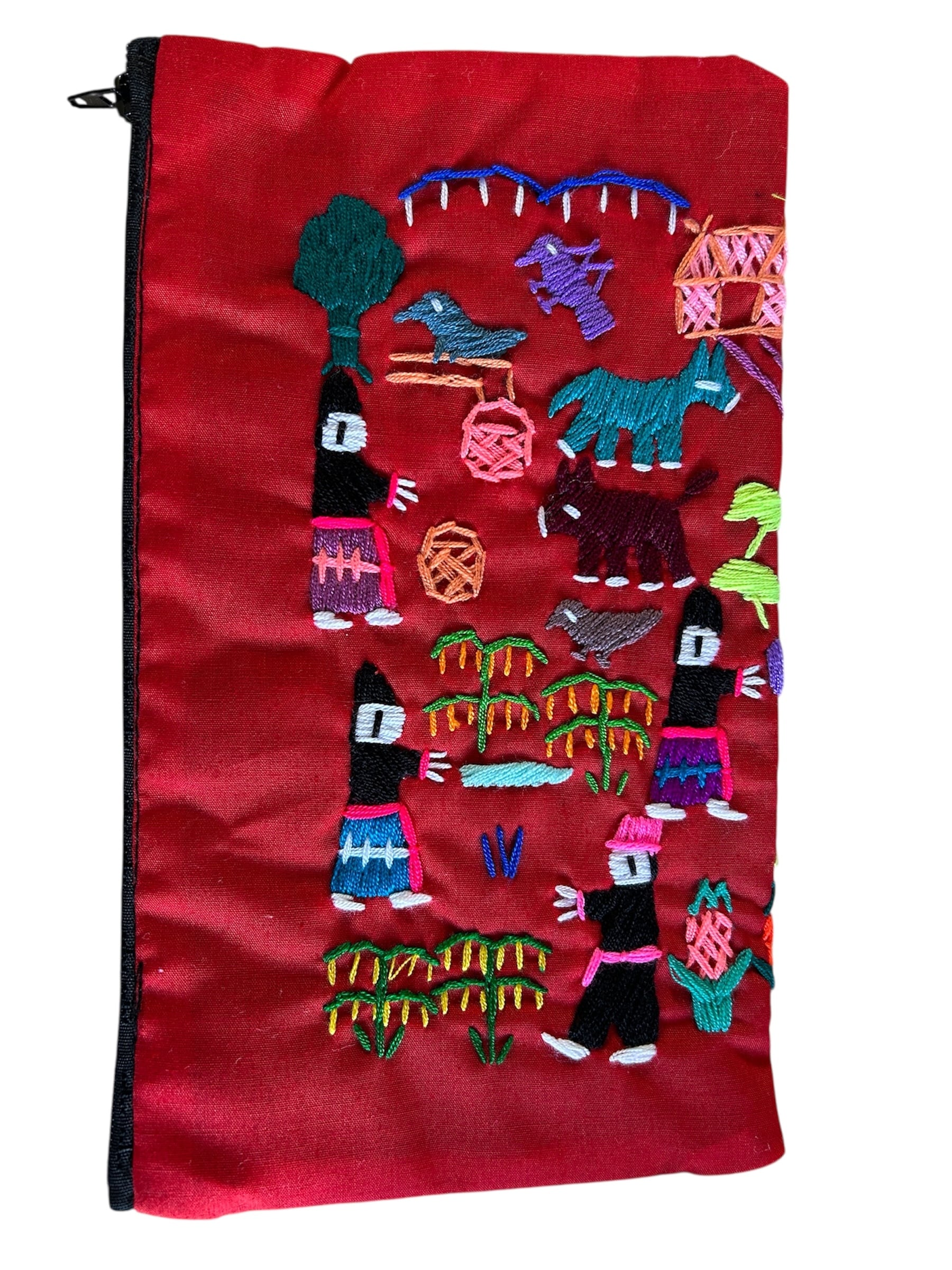 ポーチ・赤・刺繍・ラオス少数民族・アジアン雑貨(モン族)