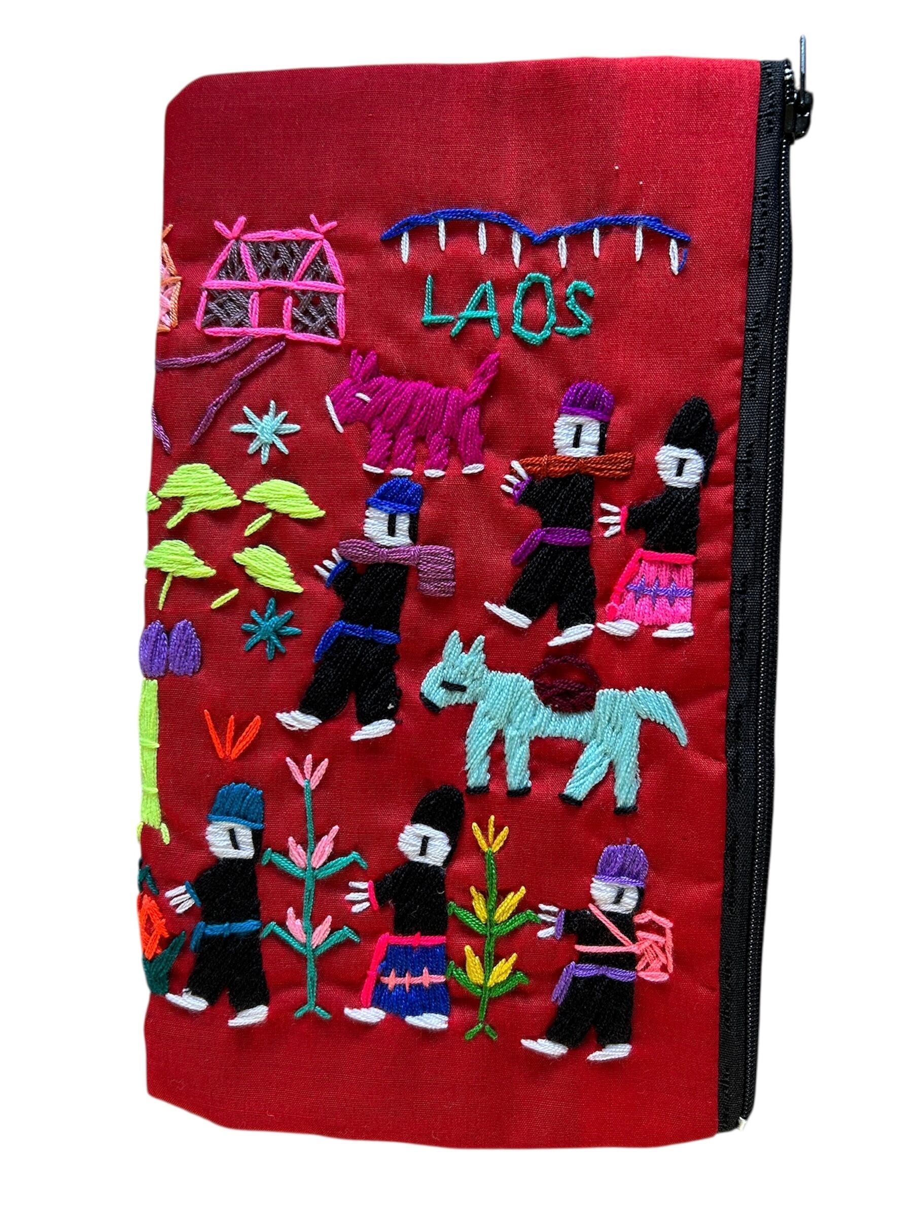 ラオスの世界遺産の町、ルアンパバーンに暮らす、モン族の女性達が一針一針手作業で刺繍をし、作り上げたポーチです。