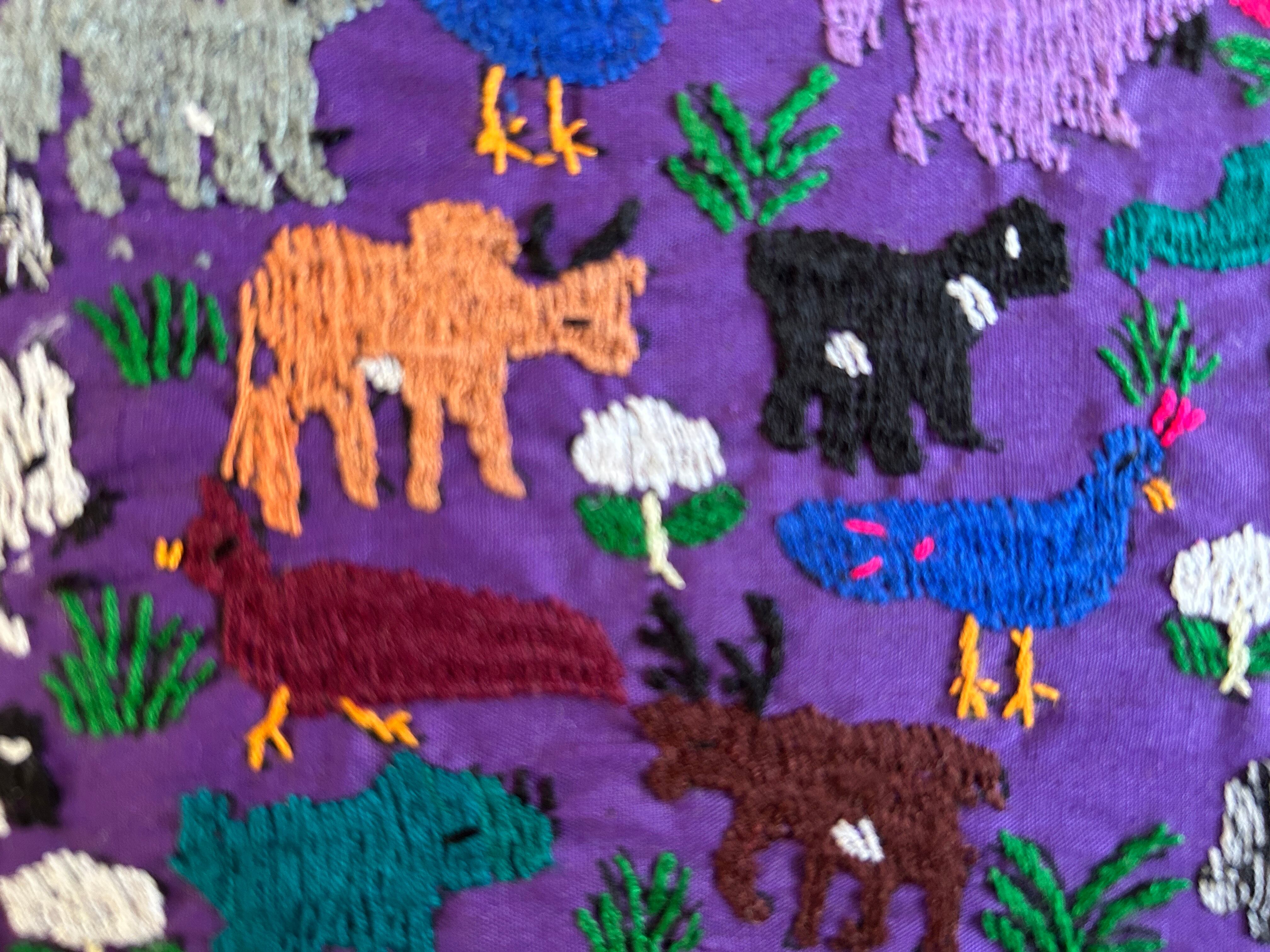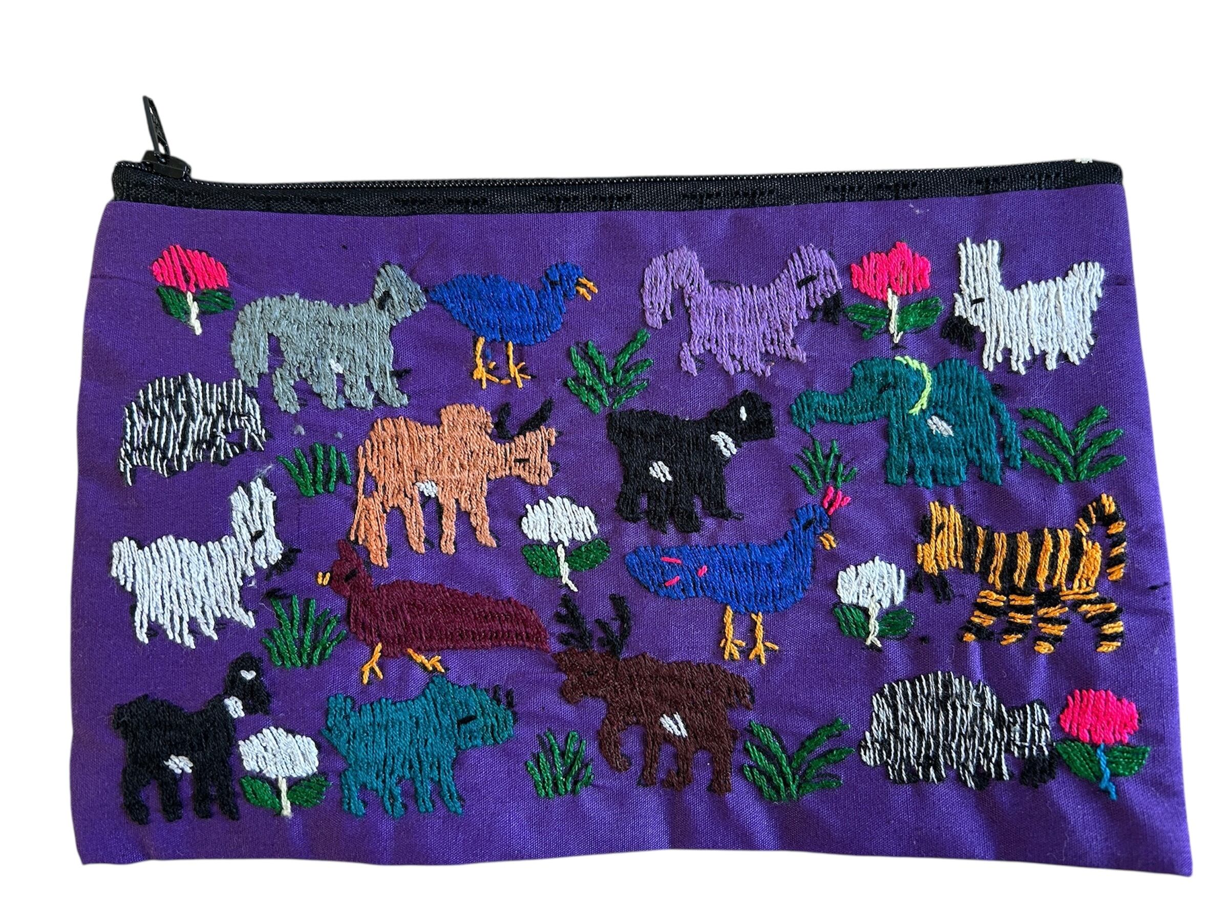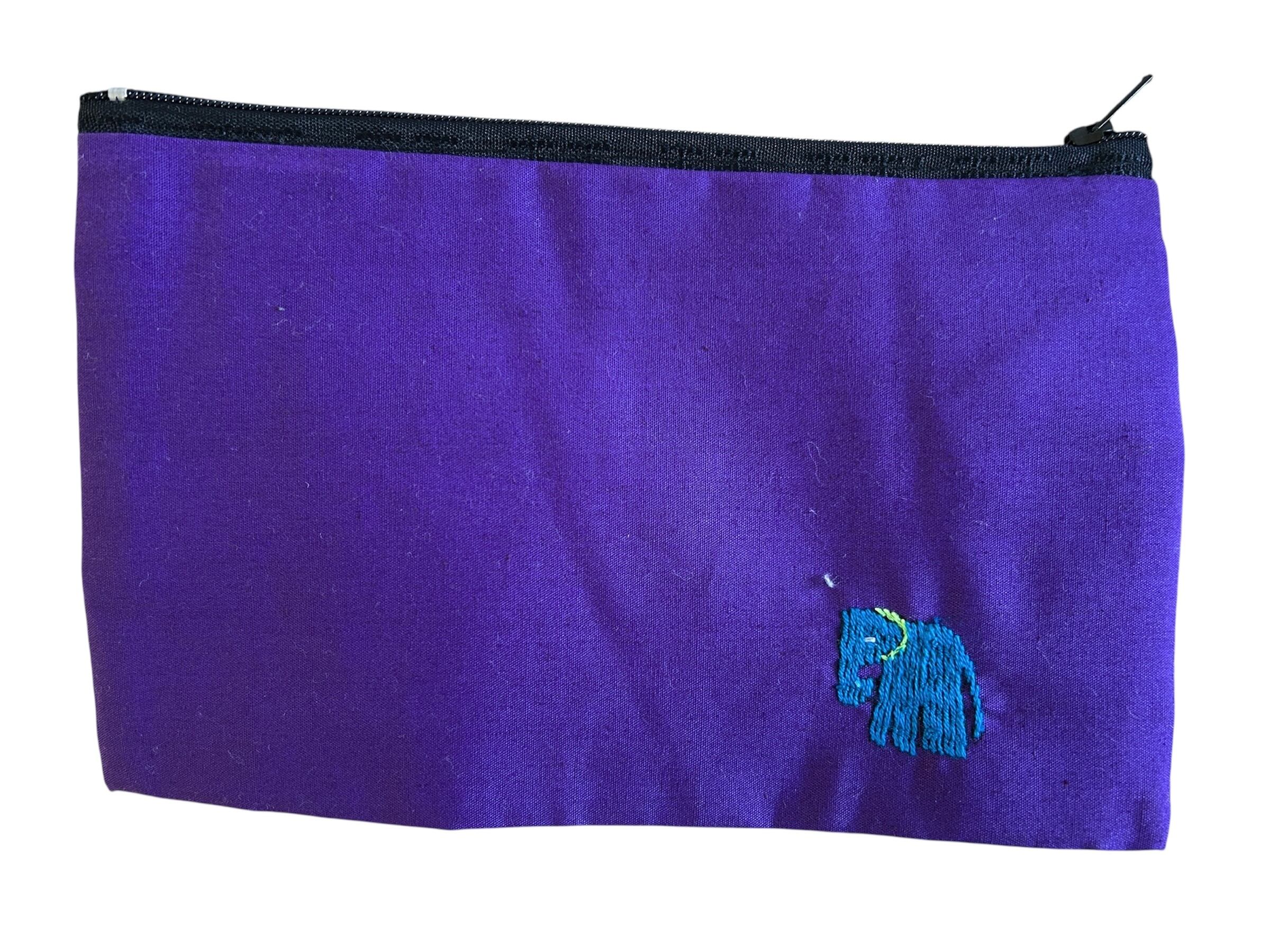 ポーチ・動物柄・ラオス少数民族・紫色・ラオコットン(モン族)