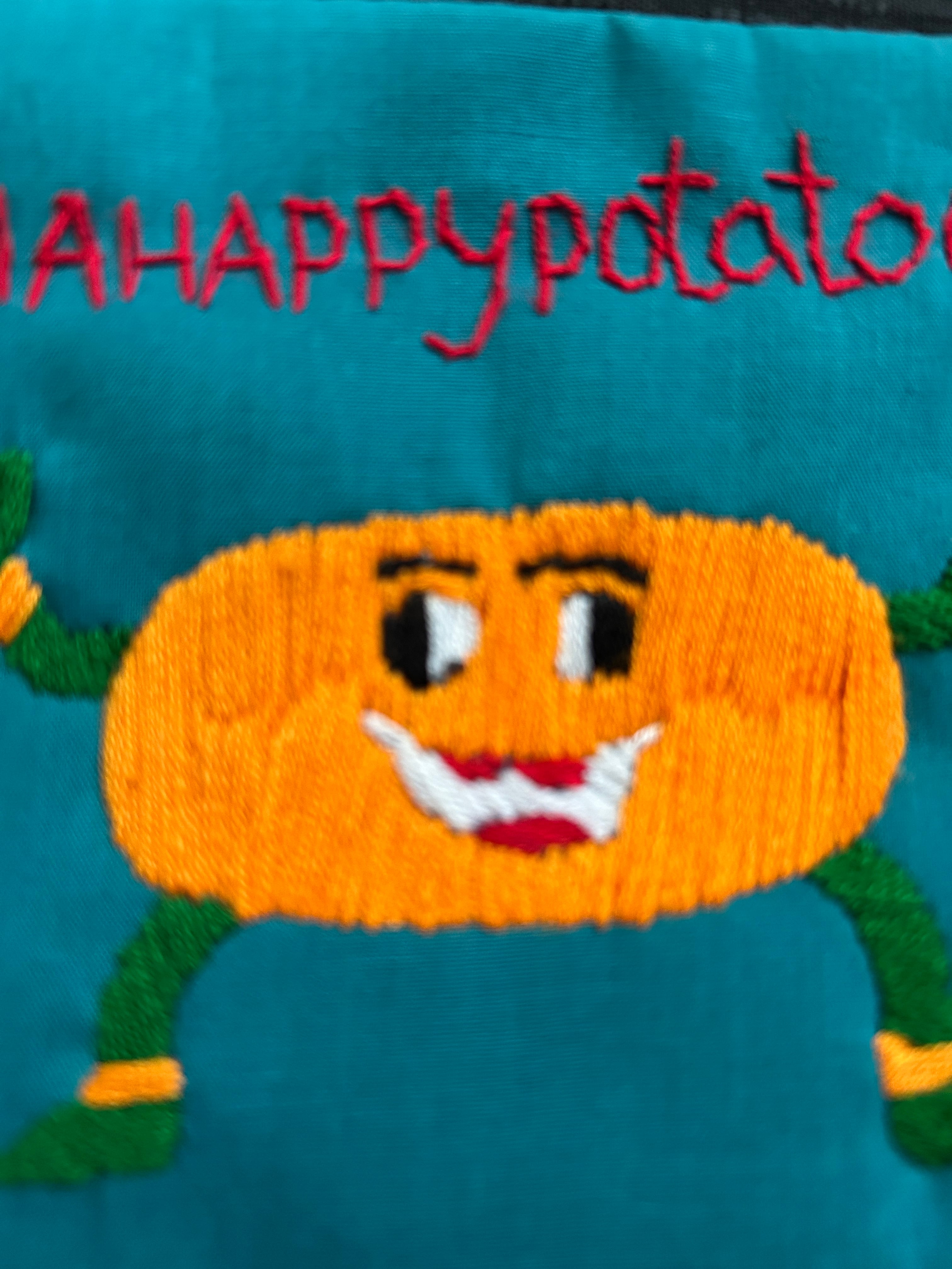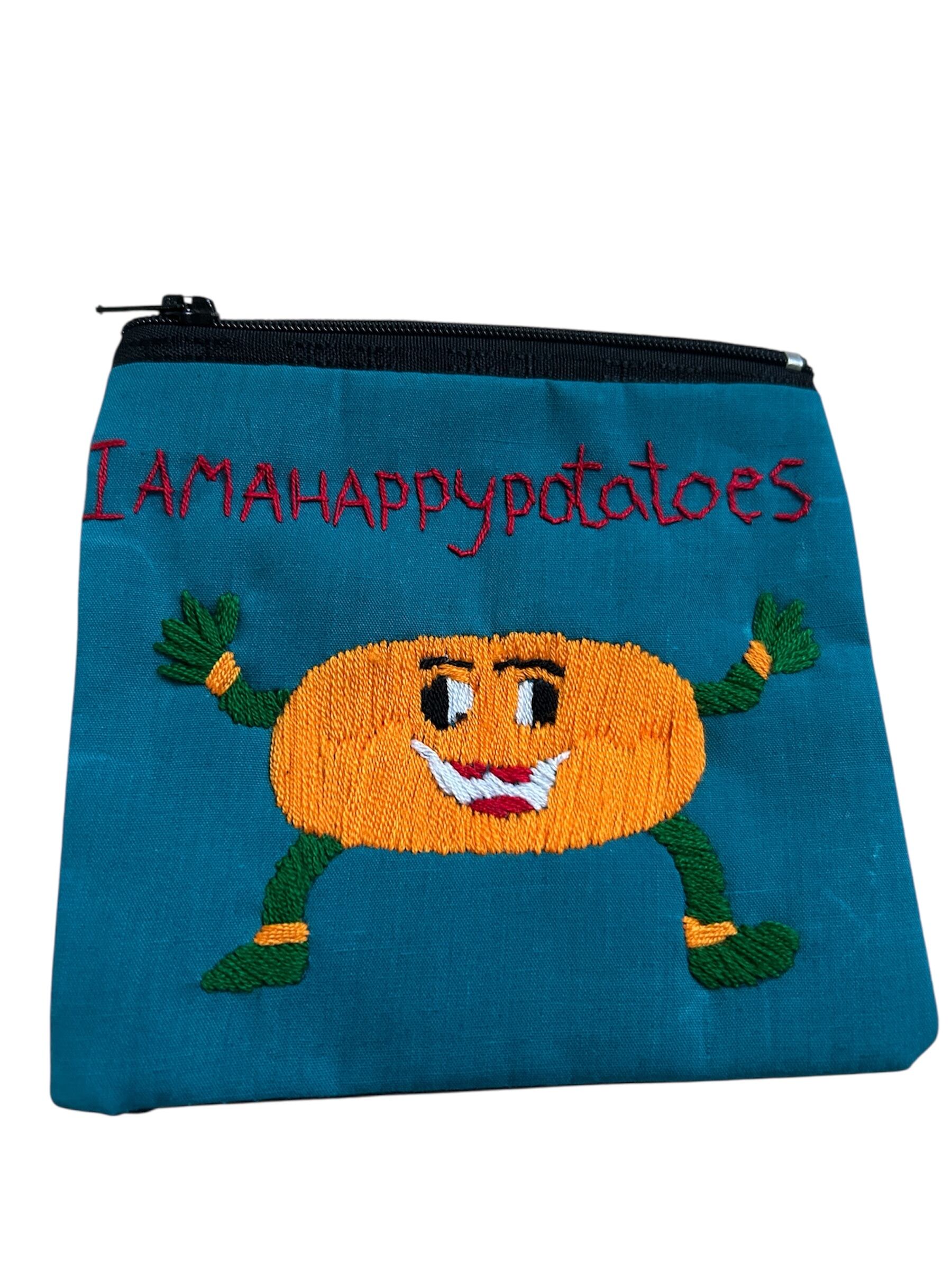 『I AM HAPPY POTATOES 』と題された、ポテトの刺繍ポーチです。