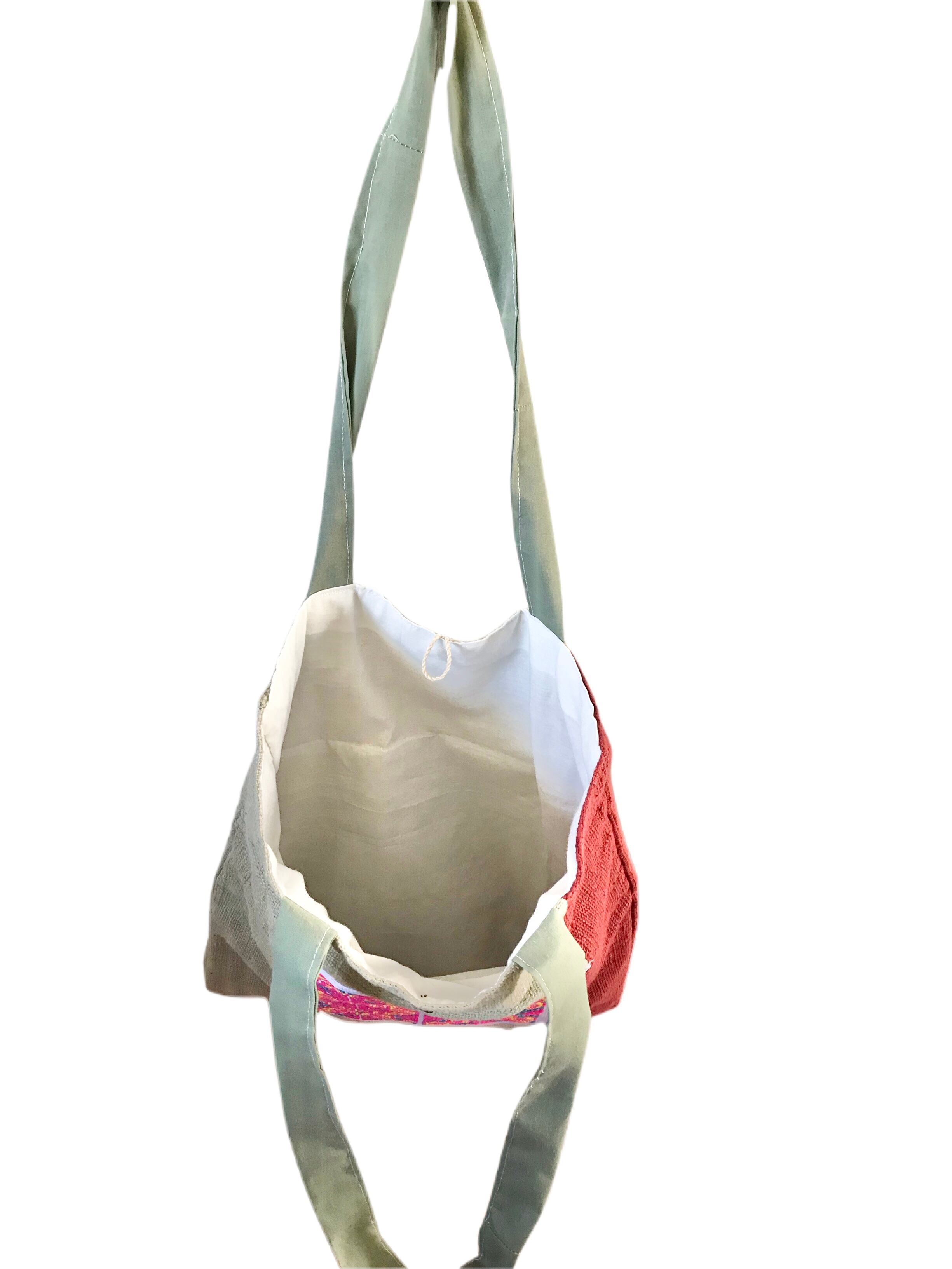 バッグには、モン族の刺繍が施されており、手織りで織ったラオコットンの布を使用して、作られています。