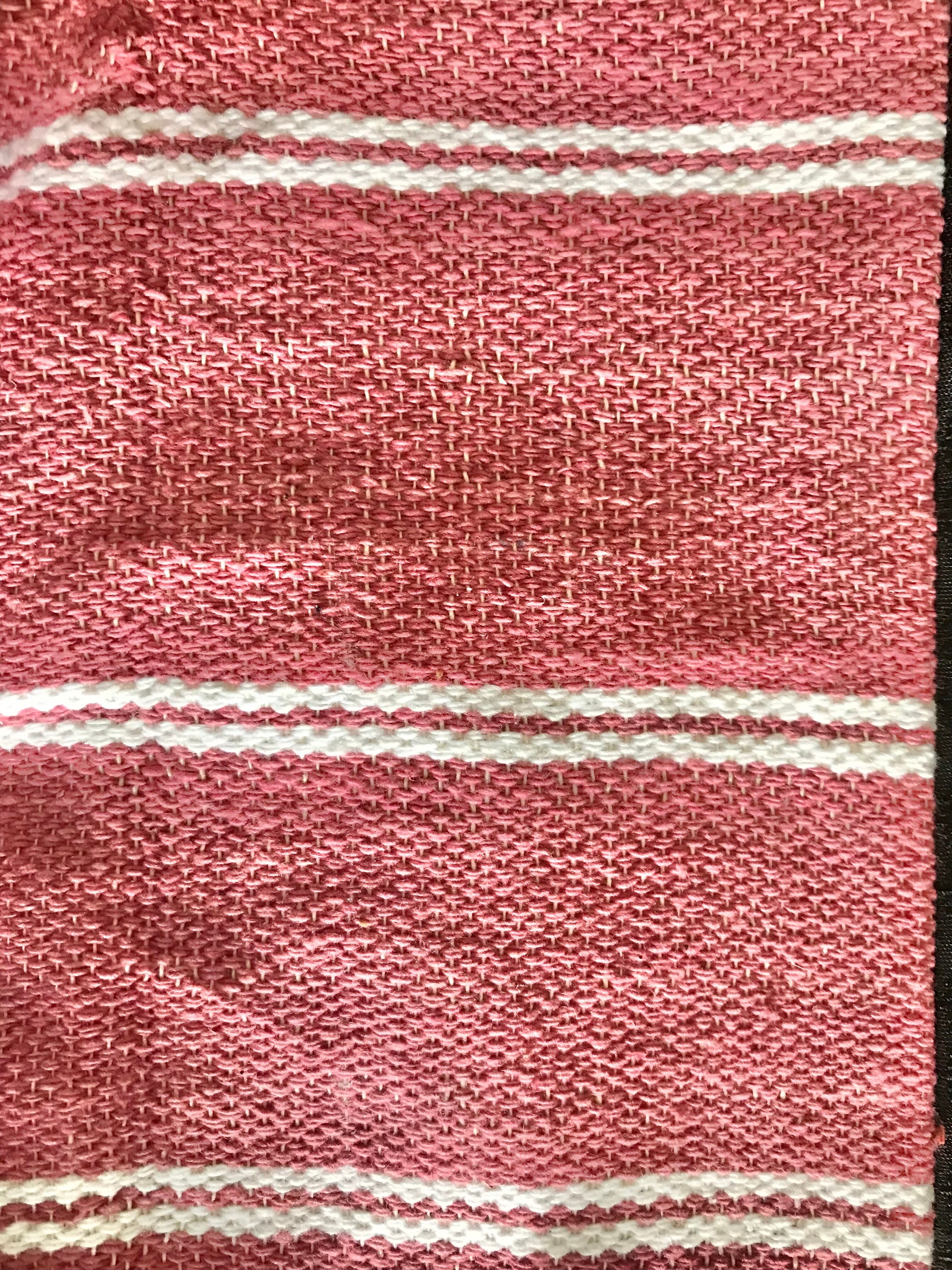 手織りしたラオコットンの布を使用し、ピンクをベースに白のラインが入った、可愛らしいデザインになっています。