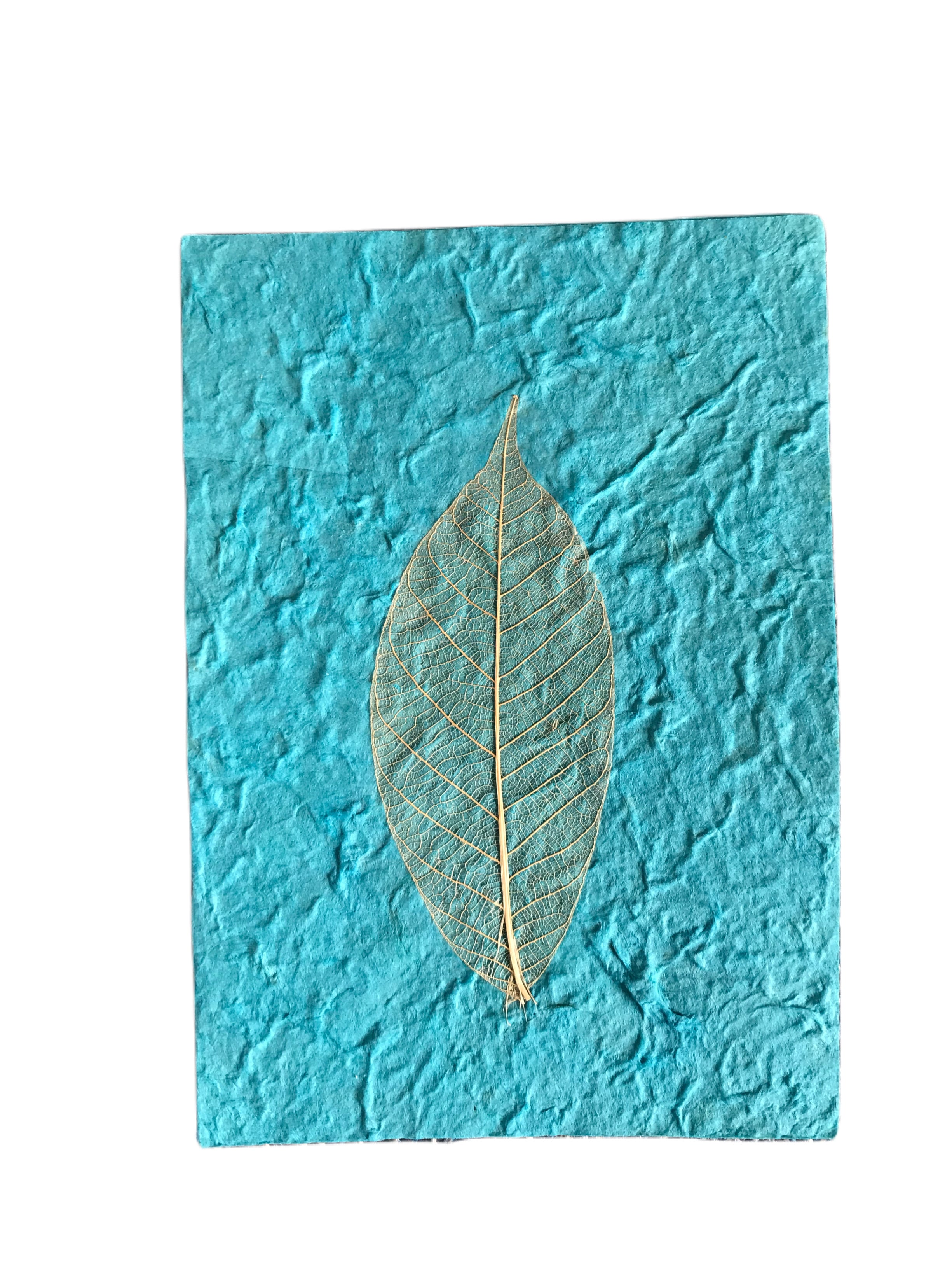 ポストカード・紙漉き・ブルメリアの葉・ブルー(ラオ族)