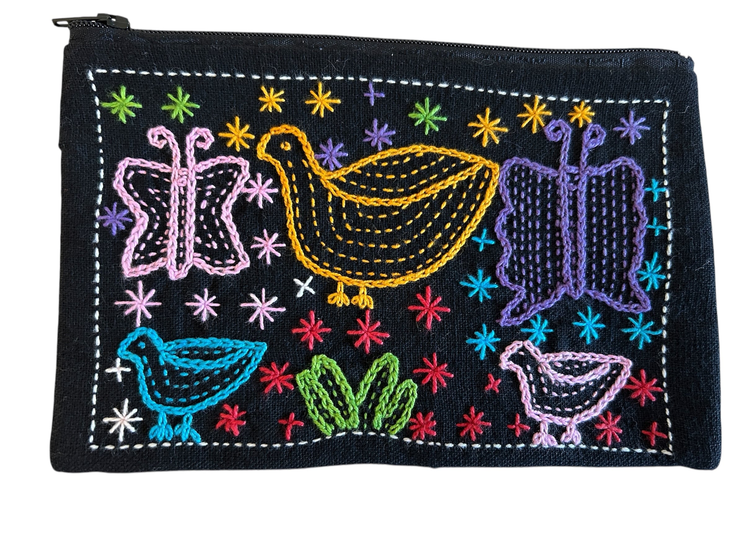 ポーチ・黒・刺繍・動物柄・ハンドメイド・ラオス少数民族(レンテン族)