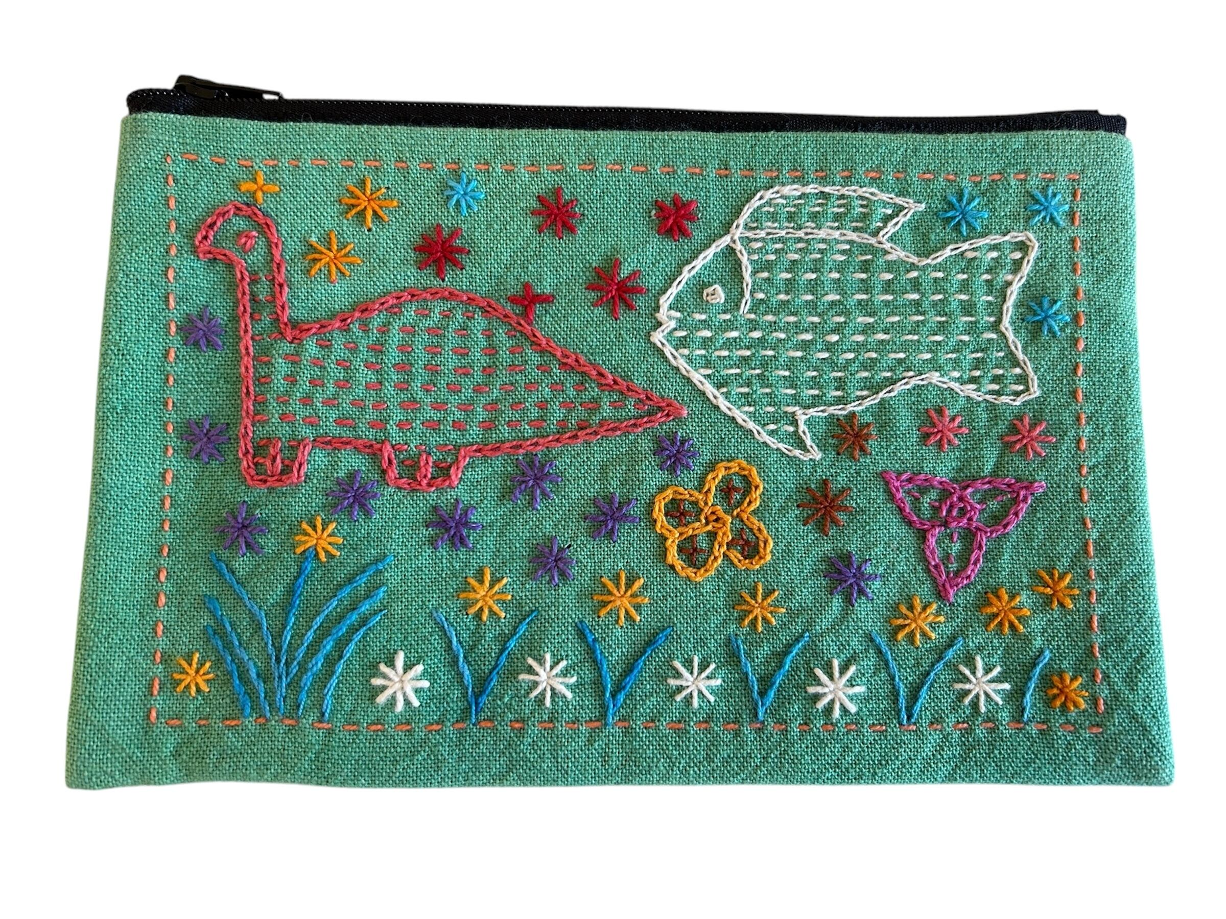 ラオスの少数民族、レンテン族の女性達が綿を育て、つむぎ、布を織り、その布にひと針ひと針、丁寧に手縫いで刺繍したポーチです。